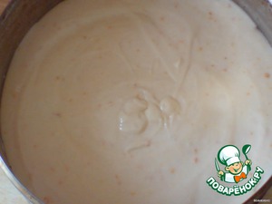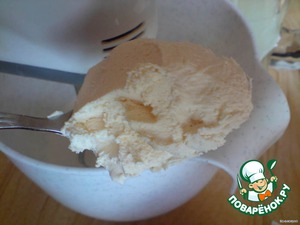 На всякий случай процеживаем его и вливаем в творожную массу. Тщательно смешиваем.