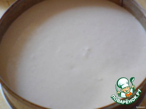 На бисквитную основу выливаем творожно-пудингово-банановый слой.