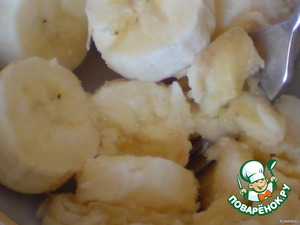 Спелые бананы хорошенько разминаем вилкой, вливаем 1ч.л. лимонного сока.