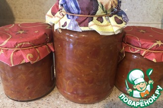 Примерный выход: 8 банок по 0, 5 л. В этот раз из половины нормы продуктов у меня вышло 3 банки по 0,7 л.