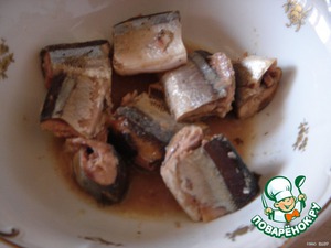 Рыбные консервы размять вилкой, предварительно слить масло.