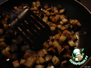 Баклажаны порезать кубиками, посолить и обжарить.