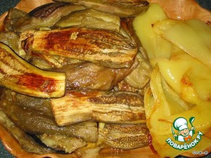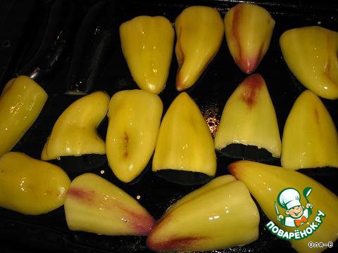Так же поступить с перцем, (противень снова смазать маслом), перец должен немного подрумяниться.