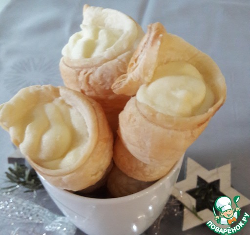 Рецепт «Слоеные трубочки со взбитыми сливками»: