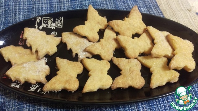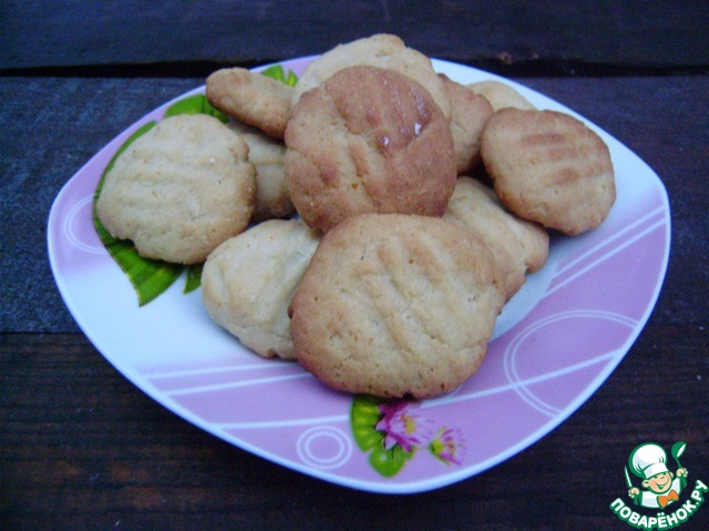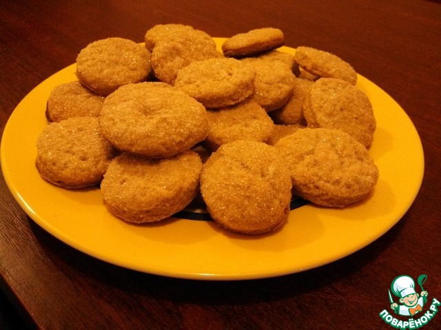 Разогреть духовку до 200°С. Противень смазать маслом или застелить бумагой. Уложить на него печенье, обмакивая верхом в сахар и хорошо прижимая, поставить в духовку и выпекать 15 мин.