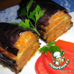 Баклажаны с помидорами, морковью и луком запеченные в духовке.