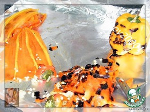 Займемся начинкой. Баклажаны нарезаем пополам, обжариваем в небольшом количестве масла с добавлением специй, пока они не станут мягкими,