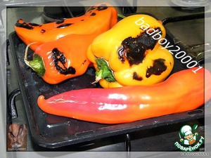 Перцы обжигаем на огне , кладем в емкость с плотной крышкой, типа кастрюли, так они потом легче расстаются с своим скафандром,