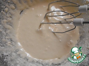 Всыпать сразу муку и мешать до тех пор, пока не образуется ком. Слегка остудить и вбить яйца. Тщательно перемешать. -