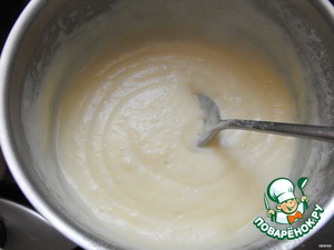 Кипящее молоко смешать с яичным кремом, взбить и еще раз довести до кипения на медленном огне. Остудить.