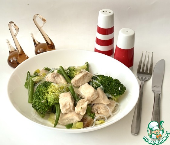 Салат из индейки с брокколи и фунчозой
