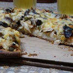 (Советы по выпечке пиццы - Выложить на тесто начинку (начинка должна быть полностью готовой, не сырой). Духовку нагреть до 250-270 С – чем выше температура, тем более хрустящей будет основа. Противень тоже нагреть - обязательно, чтоб донышко получилось пропеченным.