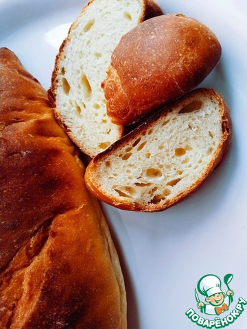 По запаху и вкусу скорее батон, чем хлеб, поэтому и заформовала батонами. Выходит два приличных по размеру батона, очень мягкие и на 2 и на 3-й день) дальше закончились