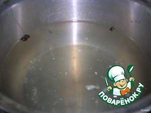 В кастрюлю налить воды, вскипятить, добавить соль, сахар, душистый перец, уксус.