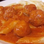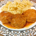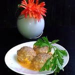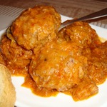 В говяжий фарш разбиваем яйцо, на терке трем луковицу и добавляем специи по вкусу, хорошенько перемешиваем, лепим тефтельки того размера, что Вам же вкуснее ))) и обваливаем в муке
