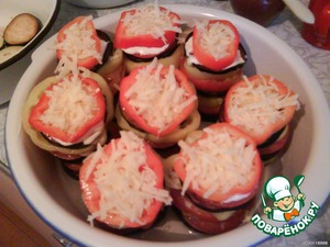 Сверху на каждый кружок баклажана положить кружок помидора.