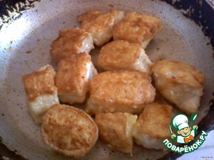 Обжариваем на небольшом количестве подсолнечного масла, затем выкладываем в кастрюлю, добавляем сметану и горчицу