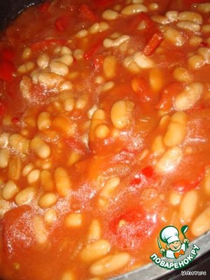 Следом отправляется консервированная белая фасоль в томате и непосредственно томатная паста.