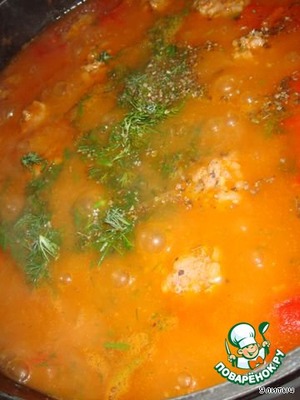 Чили кон карне - оригинальное название блюда, найденного мною в книге "Сказочная кухня Шулы". Я его переделала под себя, как говорят у нас на Поваренке. Оттого и ложное. Такой вот комплексный обед в одном блюде - фрикадельки с соусом. Для любителей острого. Получилось вкусно.