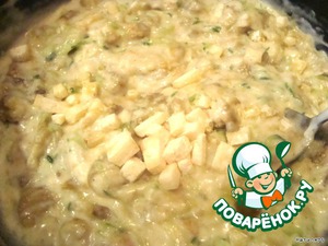 Перемешиваем, прогреваем пол-минуты, добавляем сыр.