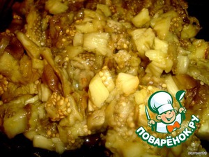 Когда соус начнет густеть, выкладываем в него отжатые огурцы и баклажаны.