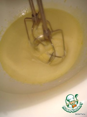 В отдельной мисочке взбиваем желтки с оставшимся 1/2 стакана сахара. Добавляем растительное масло, муку и разрыхлитель. После первого стакана муки я отложила в сторону миксер и вымешивала уже все вручную, деревянной ложкой.