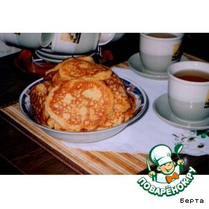 5. Нагреваем масло и по 1-ой ст.ложке наливаем оладьи на сковороду. Жарим с двух сторон. Подаем со сметаной.