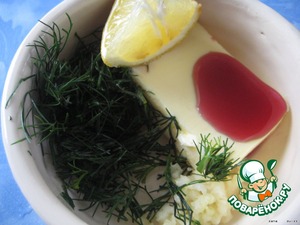 сливочное масло комнатной температуры (размягченное) хорошо перемешиваем с измельченным укропом и чесноком, вином, лимонным соком, солью. -