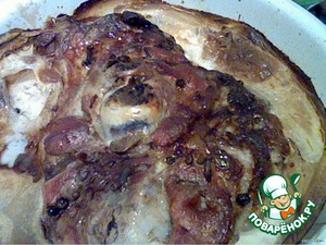 • Мясо промыть, обсушить, нашпиговать чесноком по вкусу, также вдавить в мясо гвоздику (я обычно использую штучек 6-8), перец горошком (в том же количестве), а также ягоды можжевельника. Положить в глубокую форму для запекания. Залить молоком (с тем расчетом, чтобы мясо погрузилось в молоко примерно на две трети). Дальше лучше всего прикрыть форму фольгой (но в этот раз у меня ее не было), и час-полтора выпекать мясо в духовке под фольгой, потом ее удалить и выпекать еще час