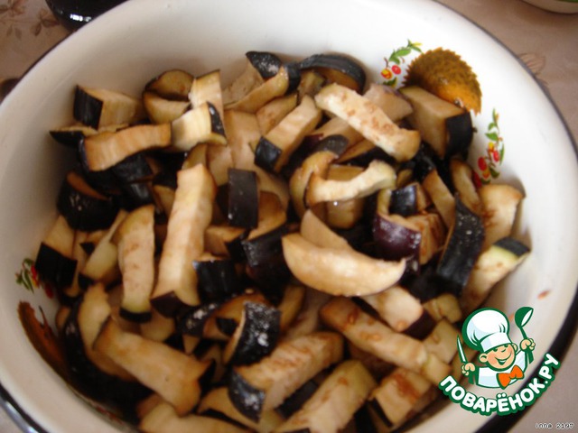 Баклажаны порезать брусочками, посолить и оставить минут на 30, чтобы сошла горечь. Затем промыть их .