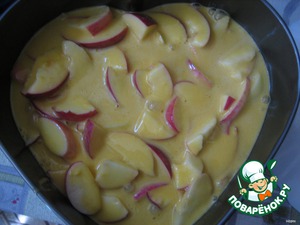 После этого выкладываем наши нарезанный яблочки, кто любит красиво выложить, как то цветочками, а я предпочитаю хаотично насыпать и все)) -