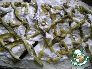 Третий лист. Можно чуть больше сметаны. Полосочками запечённые синенькие.