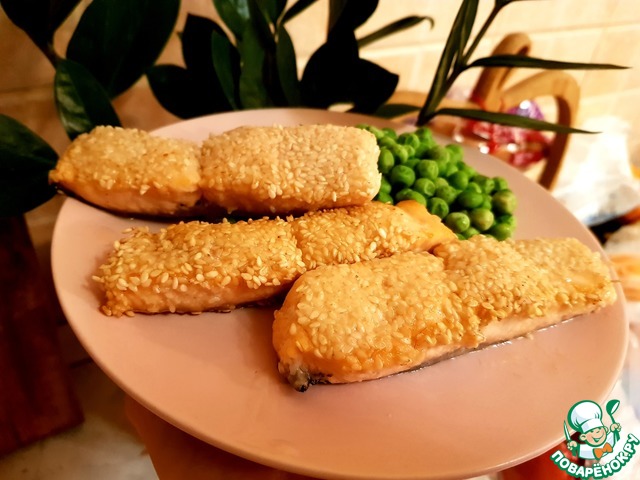 Рецепт «Лососевые палочки с гороховым пюре»: