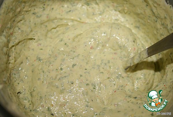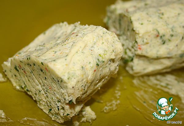 Взбить сливочное масло с зеленью, "Вегетой" и чёрным перцем.