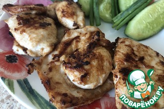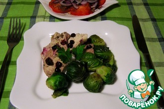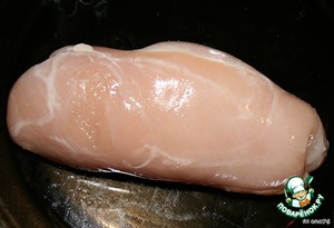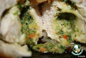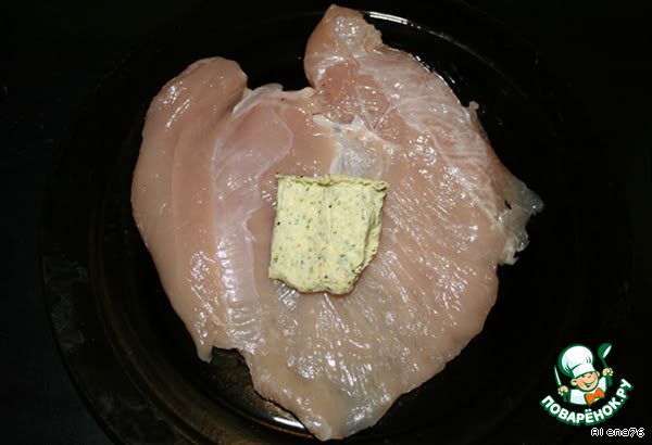 На отбитое, слегка присоленное и политое лимонным соком, филе положить 1/4 часть