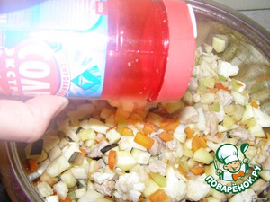 Можно и без "кетчупа".Просто у меня овощи мало сока дали. Иногда такое бедствия исправляется добавлением воды, особенно - при отсутствии помидор.
