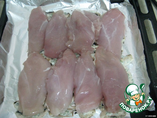 Ингредиенты для «Куриная грудка в грибной шапке»: