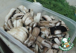 Сверху выложить грибы.Накрыть фольгой и запекать минут 20-30 при температуре 180 градусов.