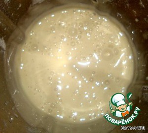 В миксере взбить 2 яйца, 3 ст. л. сахара, 3 ст. л. муки и ванилин. Если масса будет очень густой - добавьте пару ложек холодного молока.