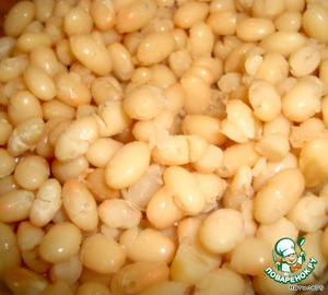 Отвариваем фасоль. Остужаем. Чтобы быстрей сварилась, можно добавить в воду питьевую соду.