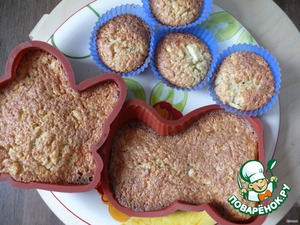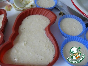Тесто разлить по формам. Выпекать при 200С в течении 30 минут. Если форма у вас не силиконовая, ее необходимо предварительно смазать и обсыпать панировочными сухарями.