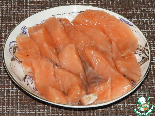 Если рыба будет слегка подморожена - кусочки получатся аккуратнее и тоньше.