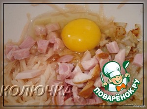 • мелко режем грудинку и добавляем яйцо, солим и добавляем паприку и специи