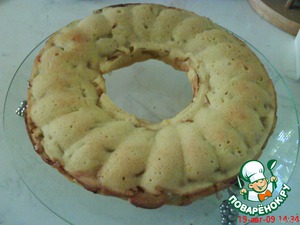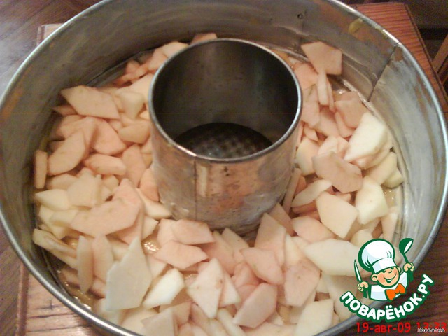 На яблоки выложить оставшееся тесто, разровнять и выпекать при температуре 180 град. Выпекать 40-45 мин. Во время выпечки дверцу духовки не открывать.