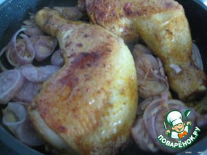 окорочка солим, перчим и обжариваем с двух сторон до образования румяной корочки. -