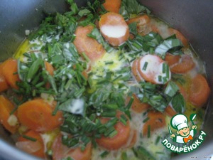 Добавить сливки и измельченную зелень; довести до кипения и подавать.