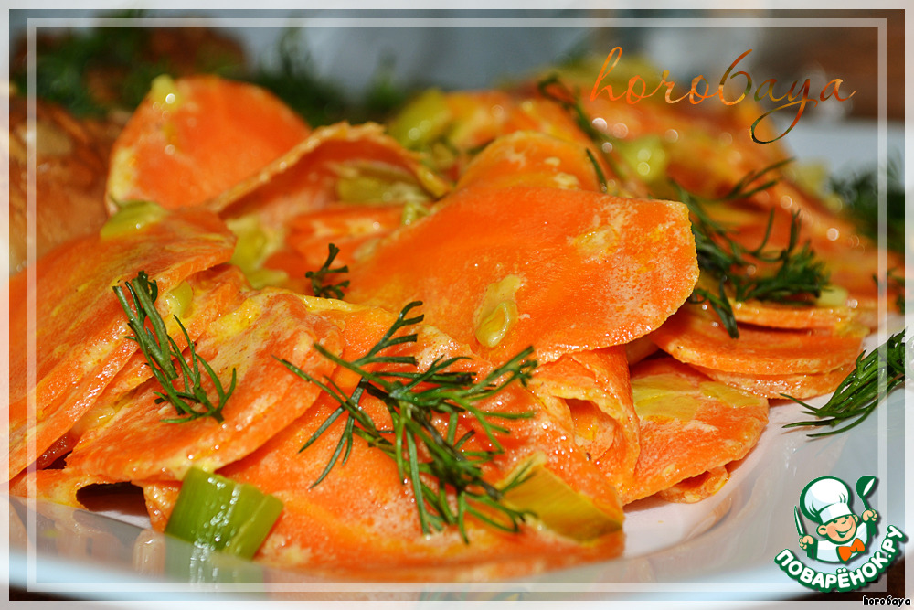 Откровенно говоря, никогда не любила отварную или тушеную морковь, даже в супе никогда ее не ела, но это блюдо полностью изменило мое отношение к этому исключительно полезному овощу. Первый раз попробовав такой овощной гарнир, я тут же попросила рецепт у своего приятеля и с тех пор готовлю очень часто, особенно в периоды "незаполненного холодильника". Это блюдо хорошо как овощной гарнир к мясу, а также можно просто перемешать с готовой крупой, типа кускус, или рисом и подать к рыбе, птице или мясным блюдам.