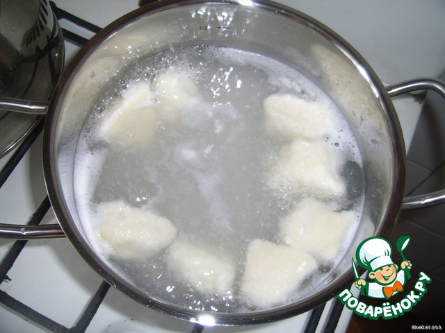 Выложить в кипящую подсоленную воду и варить пока не всплывут.