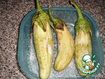 Баклажаны очистить, сделать надрез-кармашек и обильно посолить. Оставить, чтобы сошла горечь.
