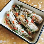 [+5]Я уже готовила подобным образом скумбрию по рецепту Женя Janecheh и знала, что будет вкусно. И это действительно тааак вкусно! Очень вкусно! У меня озерная рыбешка - молоденькие язи, они нежненькие такие, я их на филе разделила, вынув хребет, они очень хорошо промариновались, сочные, напитаны вкусом маринада, но и не потеряли своего, рыбного.